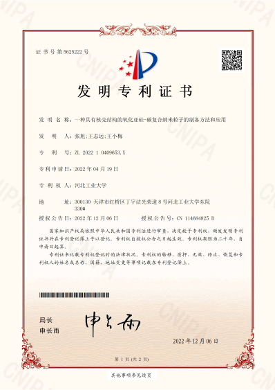 20. Zhiyuan Wang, Lingbo Kong, Zewen Guo, Xinyu Zhang, Xiaomei Wang*, Xu Zhang*, Bamboo-like SiOx/C Nanotubes with Carbon Coating as a Durable and High-performance Anode for Lithium-ion Battery, Chemical Engineering Journal, 2022, 428, 131060. IF16.744, JCR1, TOP.