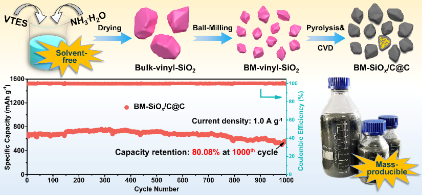2. 大规模无溶剂合成用于高性能锂电负极的碳包封SiOx/C复合材料