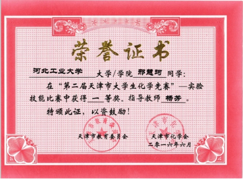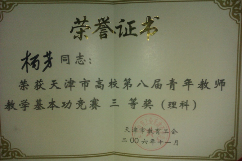 获得天津市高校第八届青年教师教学基本功竞赛三等奖