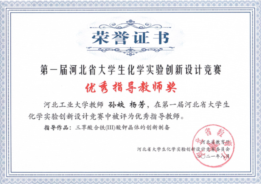 杨芳,女,博士,副教授,硕士生导师,2019.082020.07,在美国康奈尔大学做访问学者。科研方面主要从事聚合物的合成和改性、可再生能源的开发和利用、药物载体的制备及性能研究方面的基础研究工作,先后主持完成6项省级及以上课题,参与完成了15项课题工作,获国家发明专利5项,发表论文50余篇,被SCIEI收录40余篇,获得河北省技术发明二等奖和三等奖各1项。教学方面,荣获天津市高校第八届青年教师教学基本功竞赛三等奖和“河北工业大学第八届青年教师教学基本功竞赛”一等奖,多次获得河北工业大学年度课堂教学质量优秀奖,发表教学核心期刊3篇,完成校级重点教改课题2项,多次指导学生在省级以上教学实验竞赛获得优异成绩。