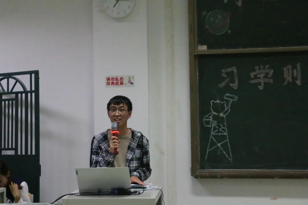褚明乐同学为大家讲解学籍管理与违规及处分、先进优秀评选及奖学金两个方面的内容。他清晰具体地说明出勤缺勤记录方法、学生学期注册、考试违纪行为、处分管理、优秀学生或集体评选办法和奖