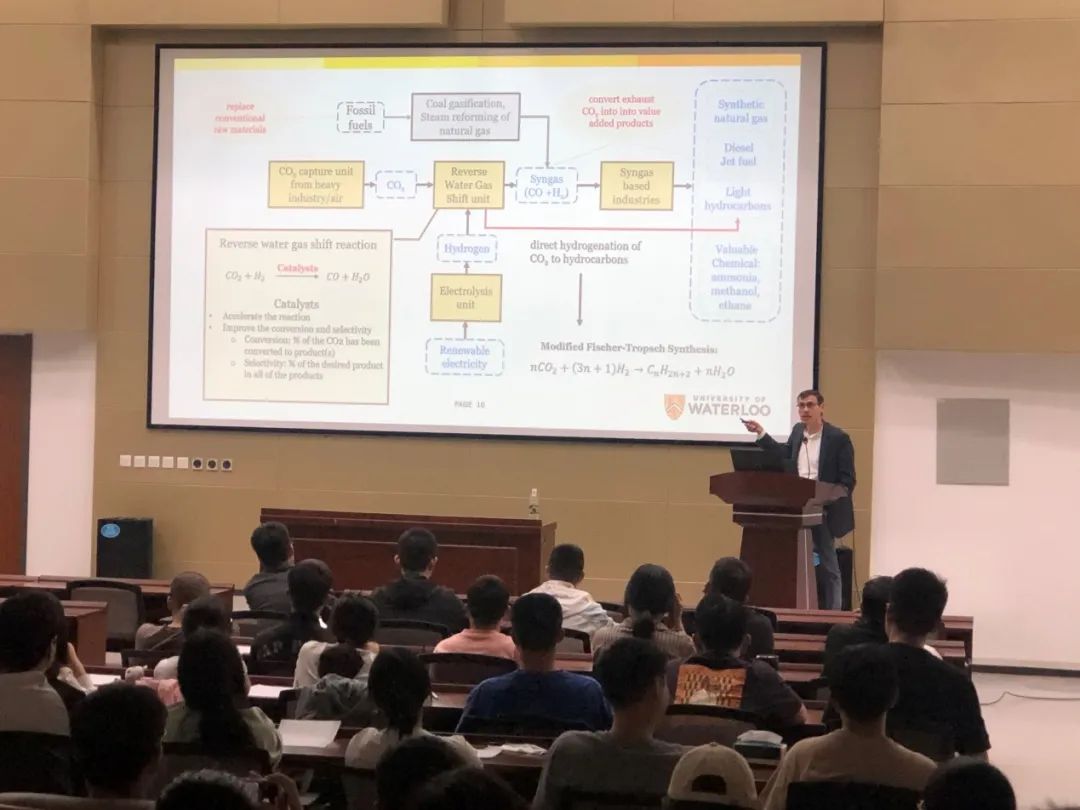 讲座中,Luis Ricardez-Sandoval教授首先介绍了其研究团队关于过渡金属掺杂型CeO2材料作为逆水煤气变换反应(RWGS)催化剂的研究进展,并重点对所采用的实验和理论结合的研究方法及催化反应机制进行了分析讲解。此外,Luis Ricardez-Sandoval教授还介绍了其提出的基于强化学习的化工工艺过程设计技术,并以视频的形式展示了其在Aspen Plus中自动生成具有最佳设计指标的化工工艺设计流程。