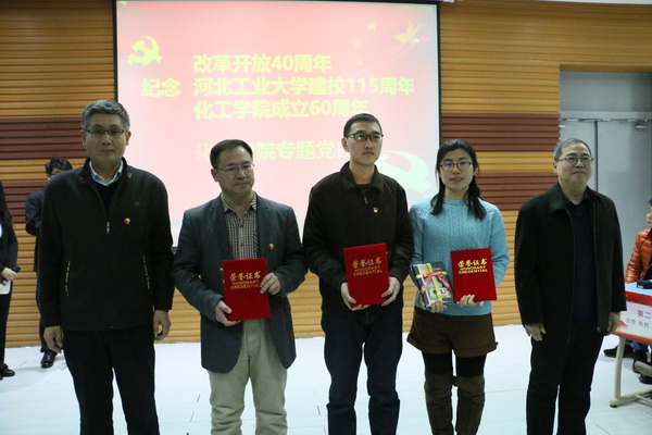 2018年12月14日下午,威廉官网中国官方网站党委在化工楼202报告厅举行纪念改革开放四十周年、河北工业大学建校115周年和威廉官网中国官方网站成立60周年专题党日活动。