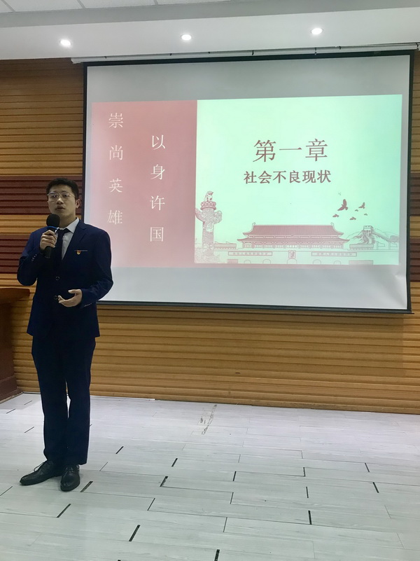 化工181班王昊同学这样描述杨十三烈士:他励志报国,勤奋攻读;他解囊办学,为民请命;他扶危济贫,支援革命;抗战爆发,他毁家纾难,投笔从戎,高举义旗;最后,为国捐躯,青史彪炳;他是抗战先烈,是爱国忠魂,也曾是我们学校风趣幽默的教授。王昊说:“革命先烈是党的红色历史和红色文化的重要组成部分,是对初心和使命教育中不可替代的精神财富。今天,我们缅怀先烈,忆苦思甜。但最好的纪念方法是将自己的青春也投入到祖国的建设中,实干兴邦,青春报国。”